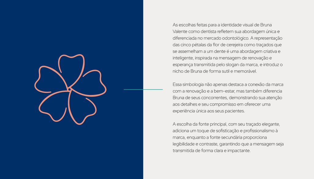 Em uma cidade no interior de Minas Gerais, Bruna Valente, uma cirurgiã dentista recém-formada com méritos, decide realizar seu sonho de abrir uma clínica odontológica em uma combinação de tradição, renovação e dedicação à saúde bucal. Ela escolheu a casa da sua família como sede da clínica, buscando honrar suas raízes e manter viva a memória de seus avós. Bruna busca criar um espaço minimalista, acessível e acolhedor, refletindo não apenas sua expertise profissional, mas também sua sensibilidade e conexão com a comunidade com um atendimento multidisciplinar e humanizado.